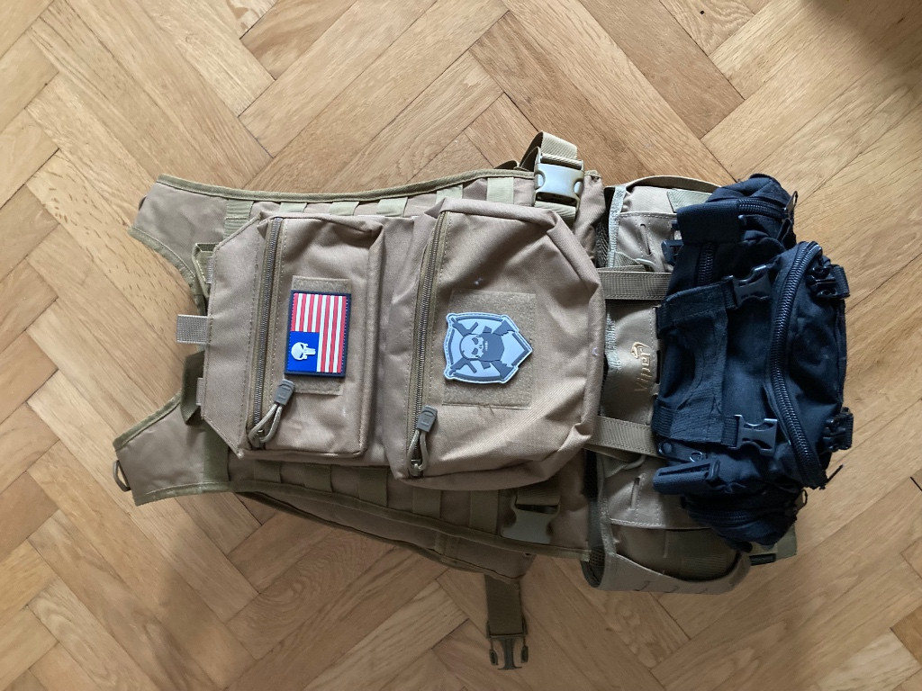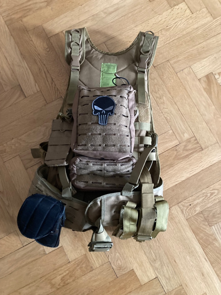 Prodám taktickou vestu v perfektní stavu se všemi kapsami a taktickým opaskem.