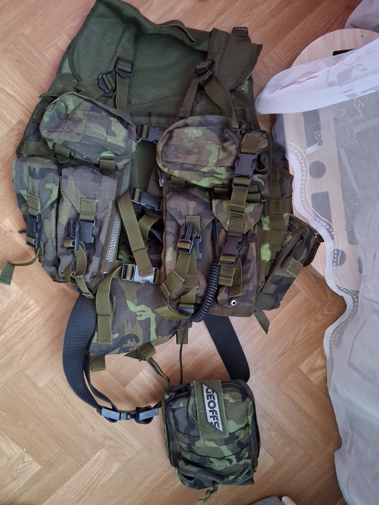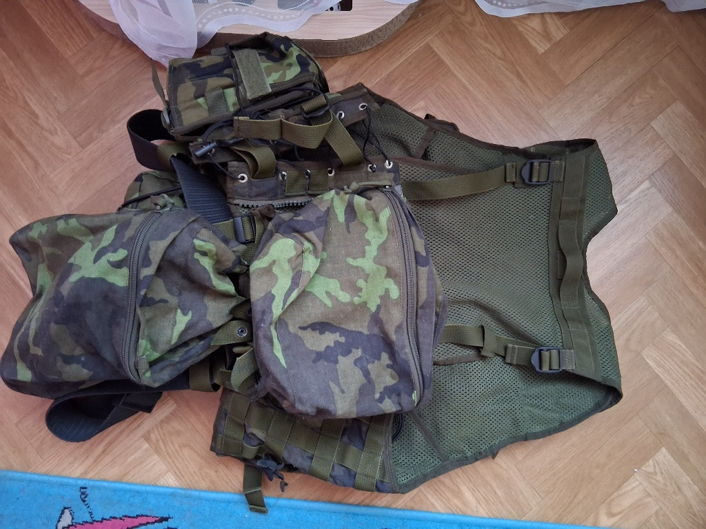 Taktická vesta BVP ve vz. 95. Používaná, nese známky menšího opotřebení. Má dvě velké vnitřní kapsy na zip, zásobníkové sumky, dvě náprsní sumky a dvě univerzální sumky, jedná sumka na granát, univerzální sumka pro kulomet a sumka pro lékarničku ( na opasku ), opasek. Mimo zásobníkových sumek vše uchyceno na modulární vazbě.