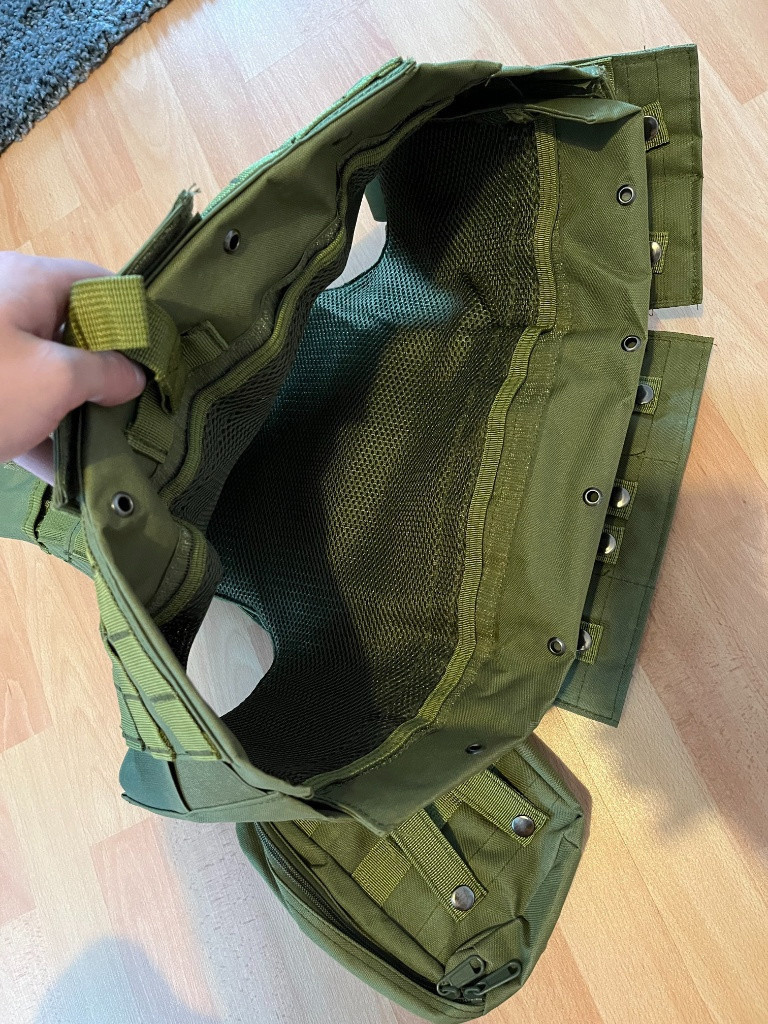 Prodám vestu viz foto. Uvnitř imitace plátů, sumka na M5/AK zásobníky + UNI sumka + admin sumka + sumka na radiostanici + dvě zásobníkové do pistole. Vesta disponuje systémem samoodhozu. Jako nová, bez poškození viz foto. CENA 1000Kč