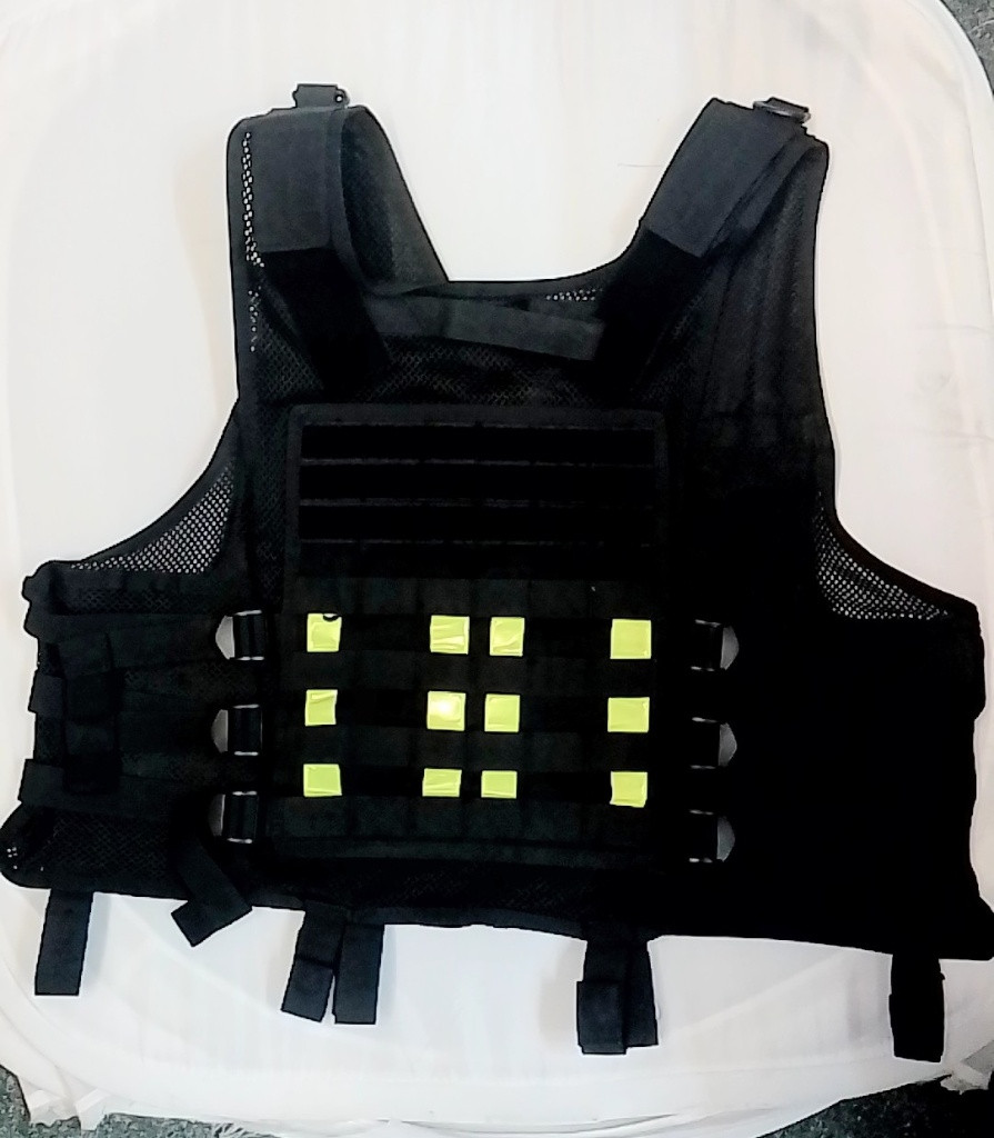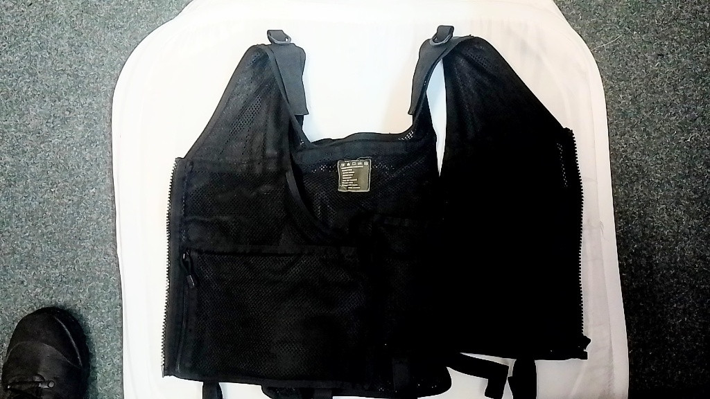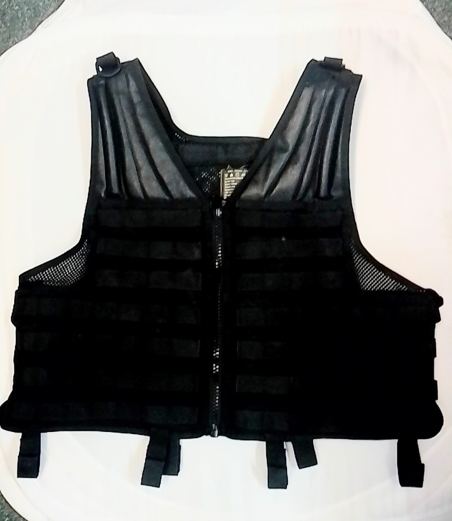 Taktická vesta Molle, vyztužená ramena, modulární, vnitřní kapsy, černá, skoro nová.