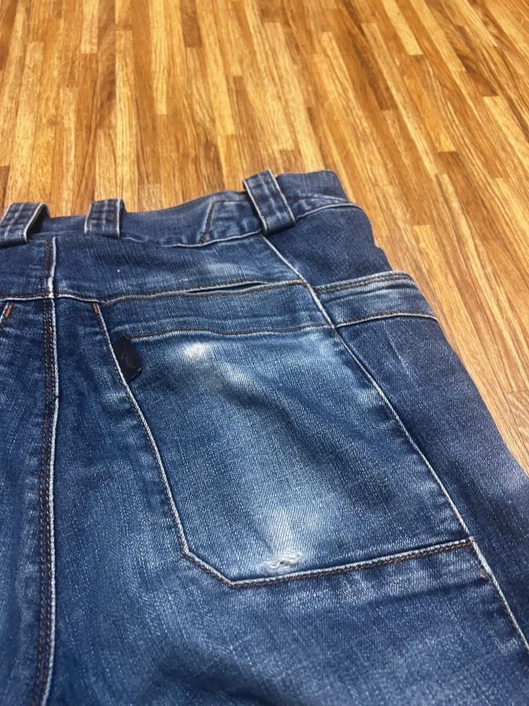 Nošené používané, bohužel už nesedí velikost. Ve velikosti S. Prodřené na pravé zadní kapse.