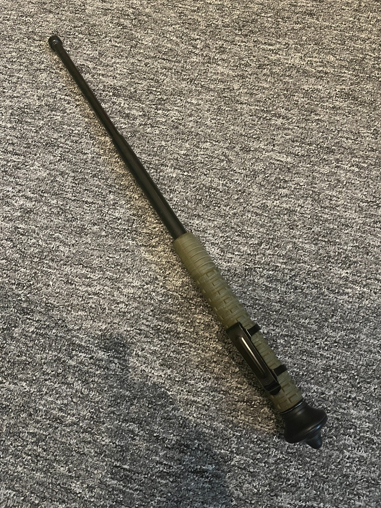Prodám kalený teleskopický obušek značky ESP. Klasické konstrukce (bez tlačítka). Pogumovaný s rozšířenou rukojetí na konci a klipem. Délka je asi 55 cm v rozloženém stavu. Zásilkovna +90 Kč nebo osobně Nová Paka. Platí do smazání.