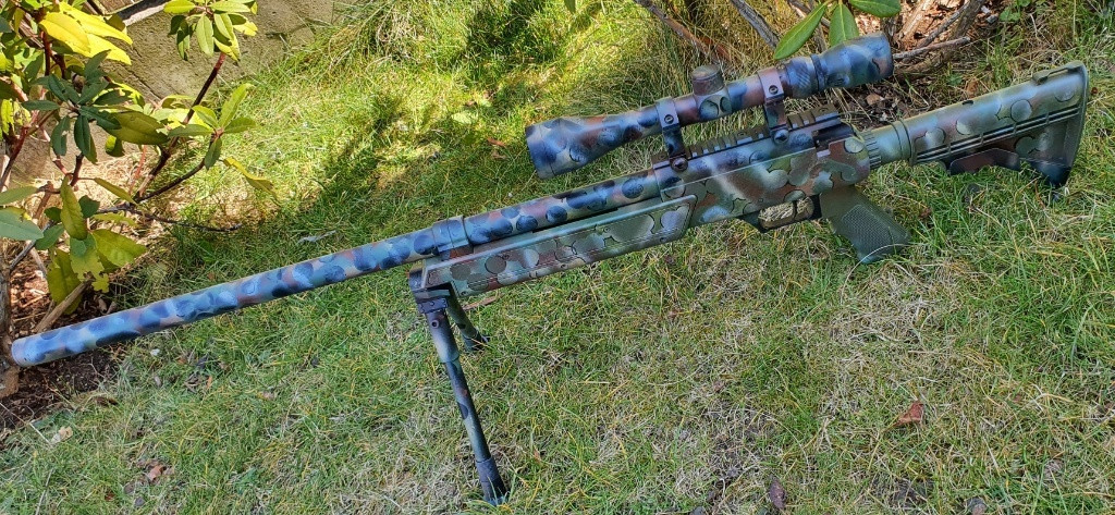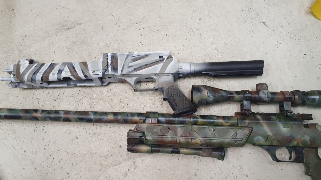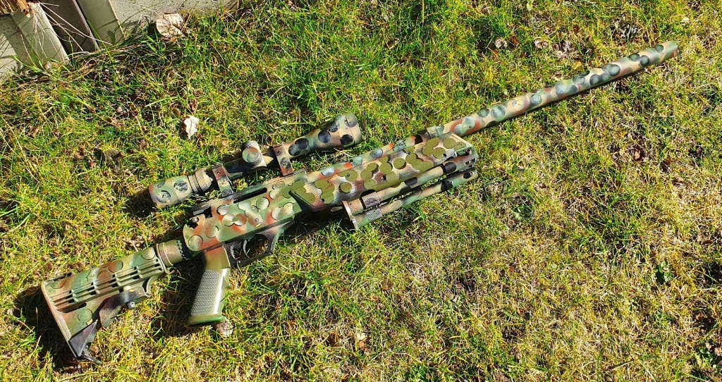 Prodám kamuflované tělo na mb06. Jednou letní varianta a navíc i zimní varianta. Součástí je puškohled (3-9×40), dvojnoha, zásobník, spoušťák. Chybí komora a hlaveň a set válce... Ideální pokud máte jednu v upu a chcete přehazovat těla podle potřebné kamufláže.... Provedení - airbrush vallejo a matt bezbarvy lak... Osobko Praha anebo zásilkovna
