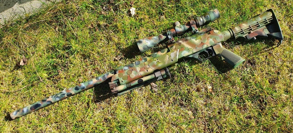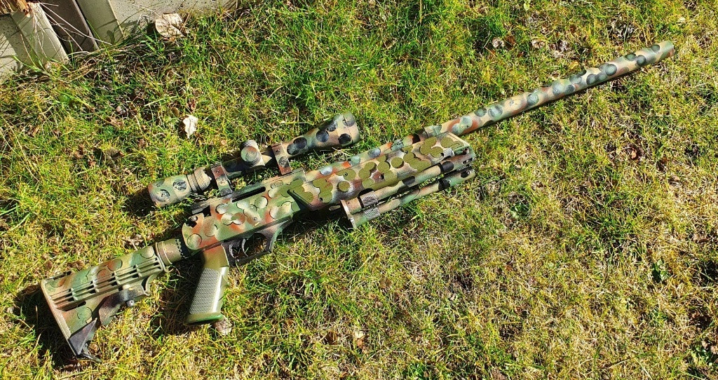 Prodám kamuflované tělo na mb06. Jednou letní varianta a navíc i zimní varianta - tj obě za jednu cenu Součástí je puškohled (3-9×40), dvojnoha, zásobník, spoušťák. Chybí komora a hlaveň a set válce... Ideální pokud máte jednu v upu a chcete přehazovat těla podle potřebné kamufláže.... Provedení - airbrush vallejo a matt bezbarvy lak... Osobko Praha anebo zásilkovna MB06, MB13, APS SR2, Urban sniper