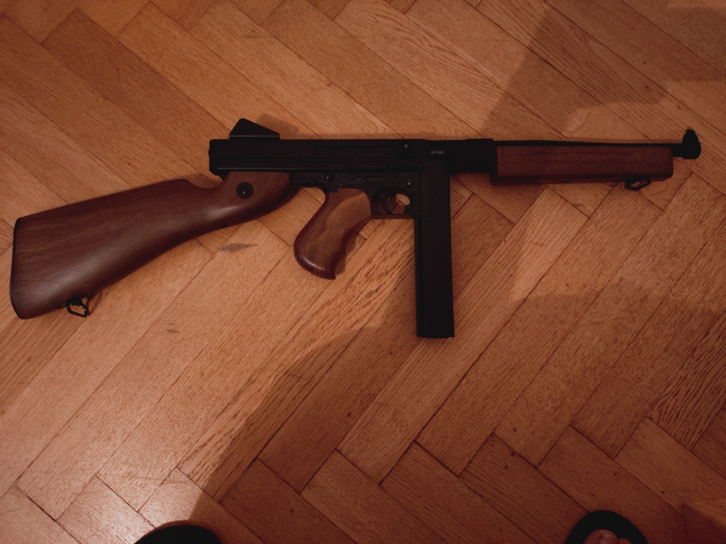 Prodám Thompsona celokov Uvnitř se nachází nerezová hlaveň 6,03 Nová silikonová gumička, alu protitlaká hlava pístu, celokovové ozubení pístu, zátěžová kola, alu tryska, shs zátěžový motor, nízkoodporová kabeláž s mosfetem Ke zbrani: 2x točný zásobník kovový a 1x tlačný plastový Zbraň je v pěkném stavu na akci nebyla, jen odzkoušeno.
