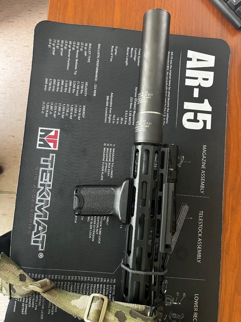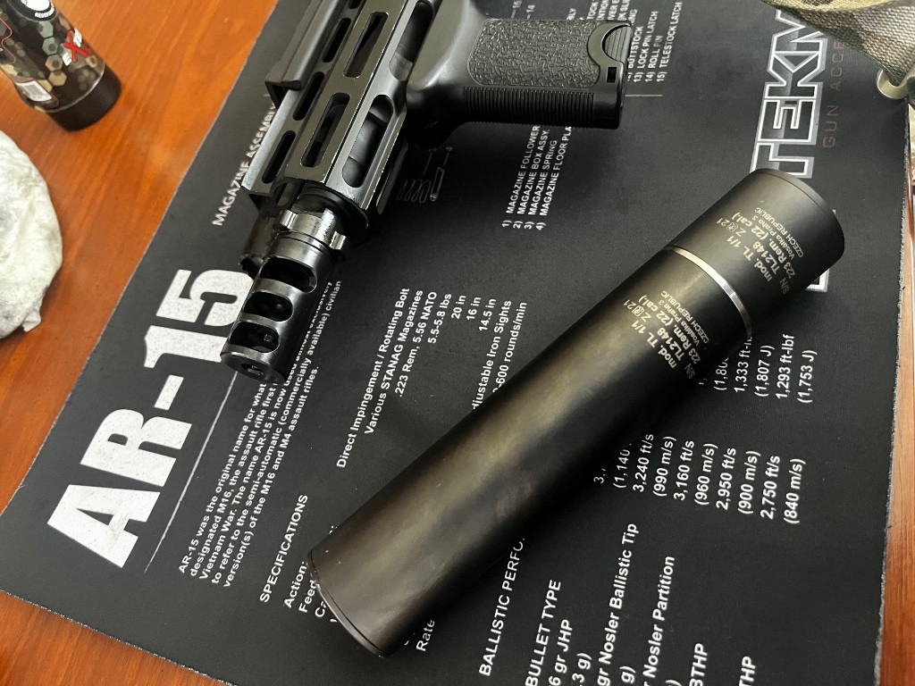 Prodám minimálně používaný set tlumiče s kompenzátorem od výrobce V-AR. Combo funguje na rychloupínacím systému TRI-LOCK.