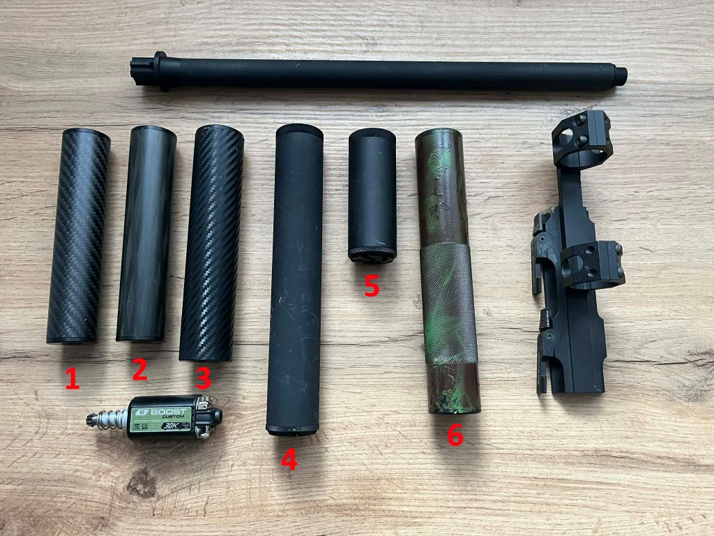 1.Tlumič 3K Carbon (32 x 150mm, závit M14 levý) - RetroArms (1400,-) 2.Tlumič Black Diamond Carbon (32 x 150mm, závit M14 levý) - RetroArms (1400,-) 3.Tlumič Carlos Shifty hliník imitace carbon (35 x 165mm, závit M24 pravý) (300,-) 4.CNC tlumič výstřelu - B (35 x 214,5mm, závit M14 pravý) - RetroArms (300,-) 5.CNC tlumič výstřelu - B (35 x 94,5mm, závit M14 pravý) - RetroArms (150,-) 6.No name tlumič (35 x 196mm, závit M14 levý) (200,-) CNC montáž na optiku 25/35mm s QD auto-lock (450,-) CNC vnější hlaveň AR15 - A (14,5) závit M14 pravý - RetroArms (900,-) Dlouhý motor Ultimate BOOST 30K, ASG (nové uhlíky) (800,-)