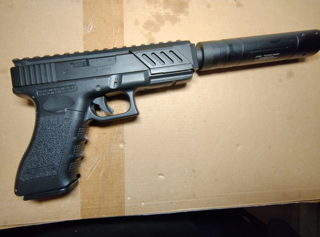 Dobrý den, prodám AEP G18C od výrobce Tokyo Marui. Na závěru zbraně je namontován kovový RIS adaptér se závitem na tlumič a kovový tlumič od King Arms. Pistole je plně funkční, bez závad. Ke zbrani je jeden zásobník. Akumulátor, nabíječka, ani původní mířidla nejsou součástí prodeje.