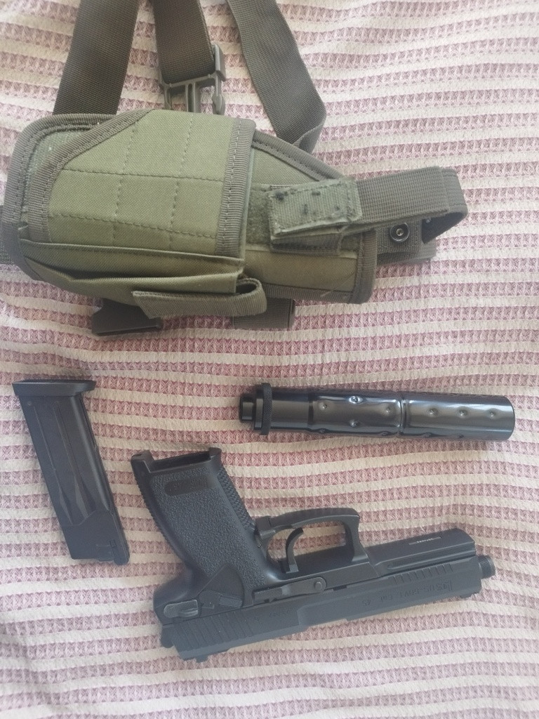 Prodám Socoma MK23 s originálním kufříkem a svítilnou a stehenním pouzdrem. Na zbrani je udělaný TDC, takže BB o váze 0,40g není problém.