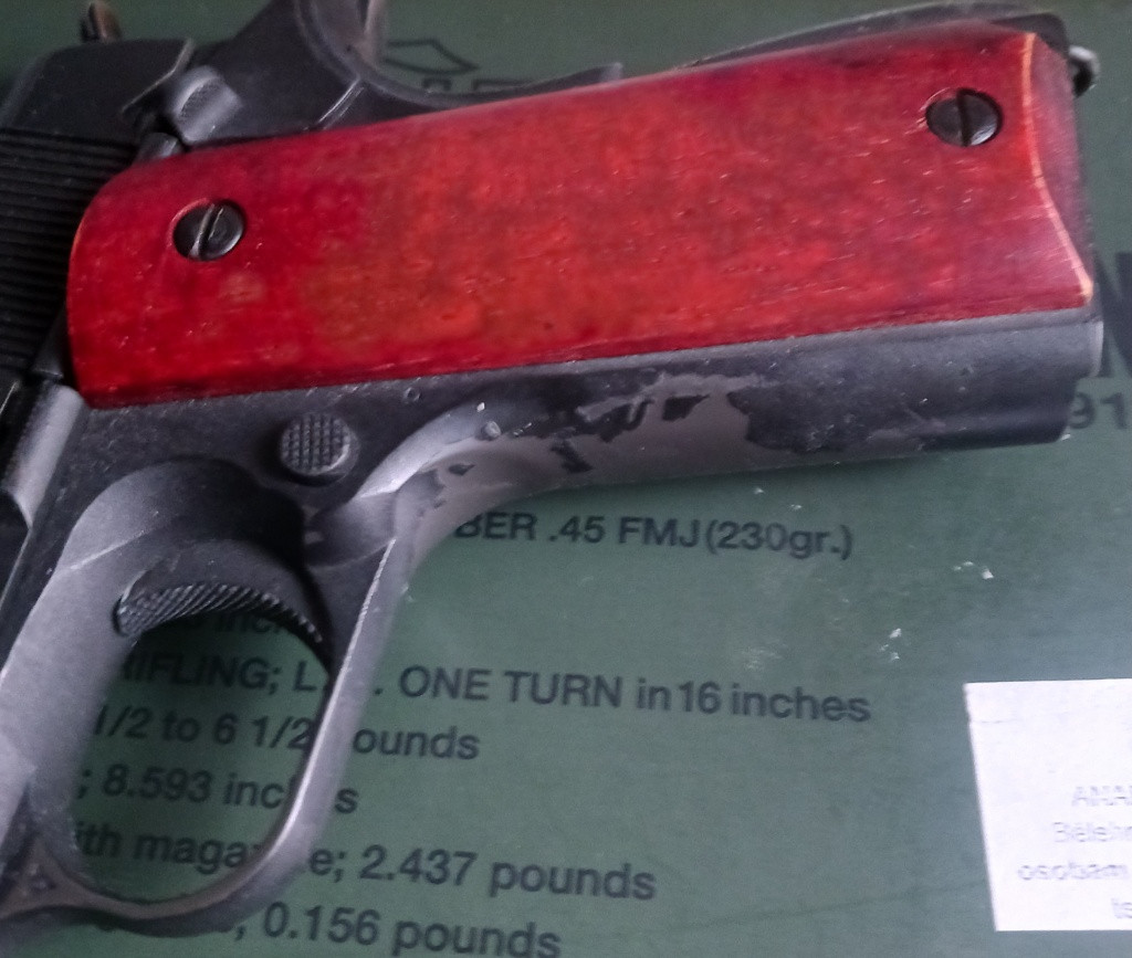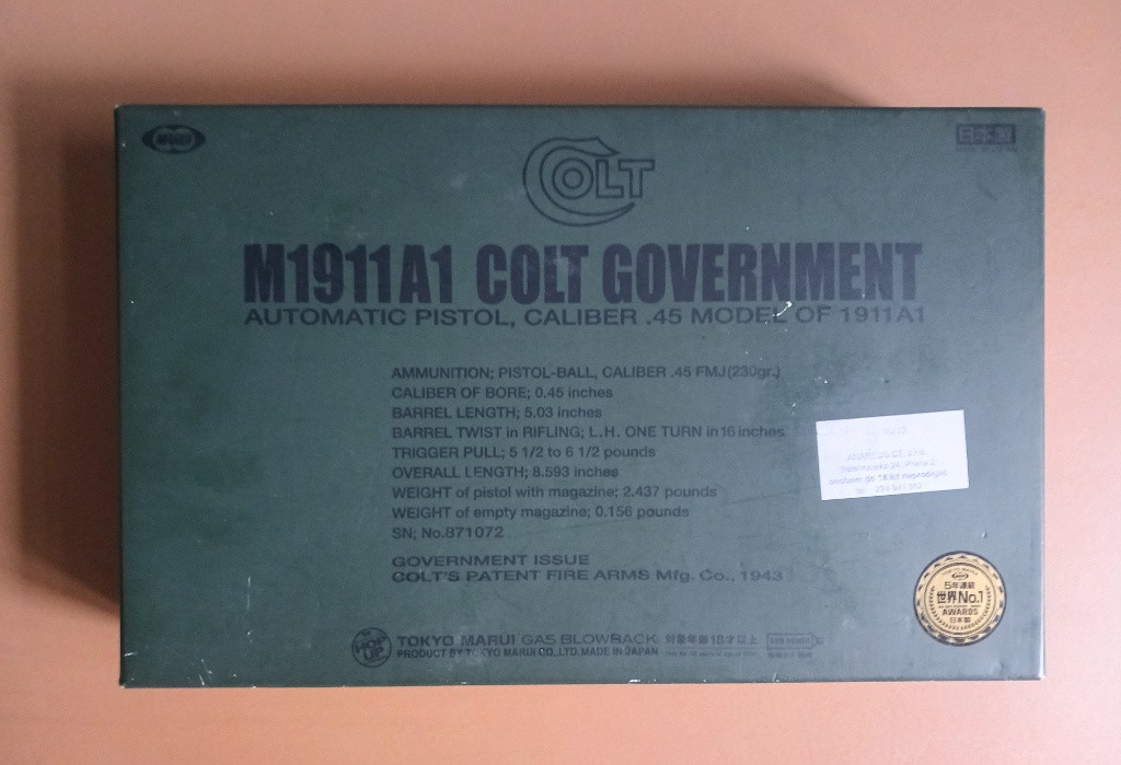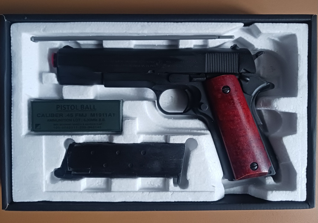 Zdravím, prodám raritní 1911 v původním obalu od špičkového výrobce Tokio Marui. Je stříknutá černým krylonem ale na části se trochu odřel od používání. Vyčištěno a namazáno. Přidány extra dřevěné střenky pro lepší pocit a reálnější vzhled. V případě dotazů nebo zájmu mě neváhejte kontaktovat. Přepravu hradí kupující.