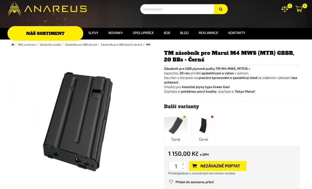 Ahoj mam tu na prodej 5 shortmagu od Marui . Každej kdo vlastní Marui GBBR ví že je to ted s dostupnostní zásobníků velký špatný. Všechny těsní a podávají jak mají . Ve hře byly 1x . Kupovano cca před 2 měsíci . 900 za kus . Při koupi všech 5 nechám za 4000 . Možnost osobního předání v Brně . Pokud se bude posílat , dopravu hradí kupující ( 79kč ) . Piště sms / mail / whatsup .