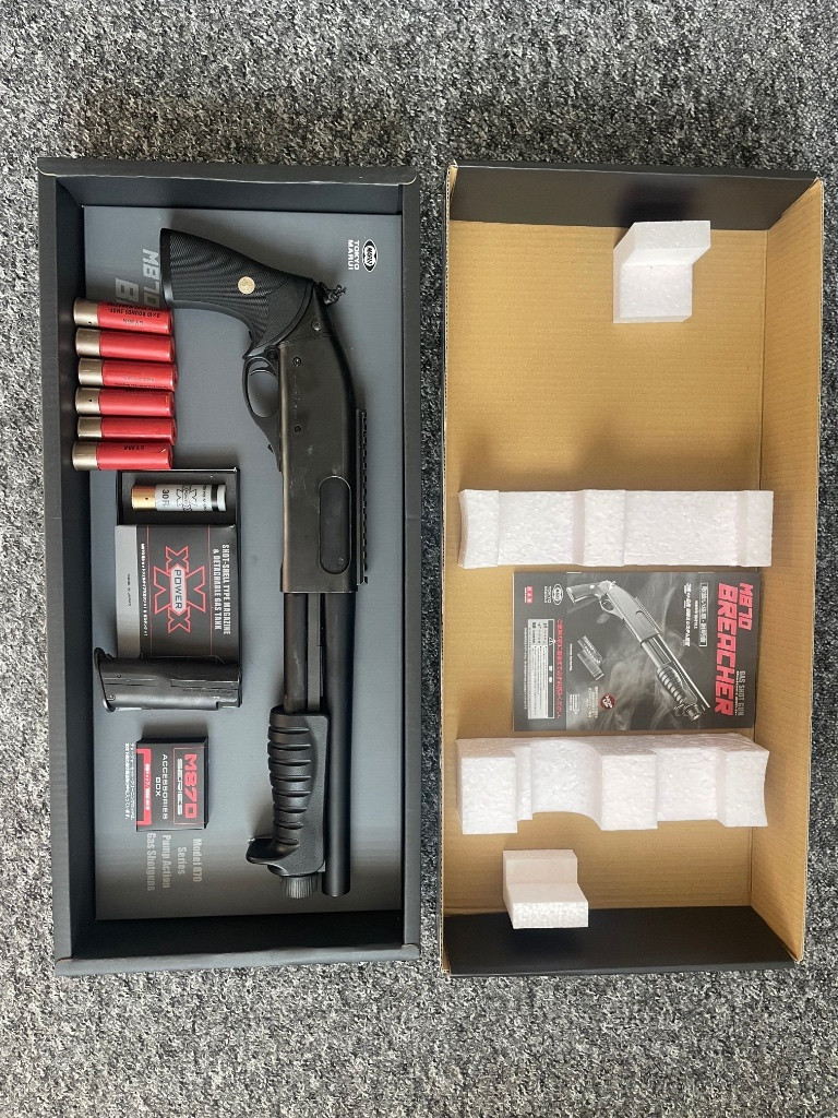 Popis:Tokyo Marui M870 Breacher Greengas brokovnice