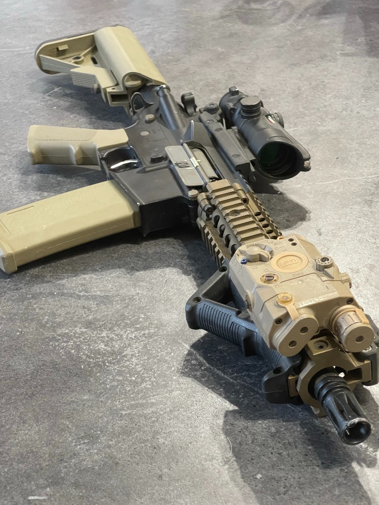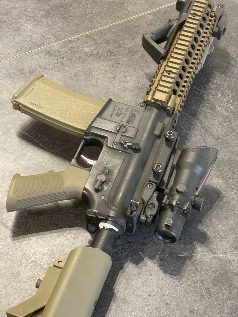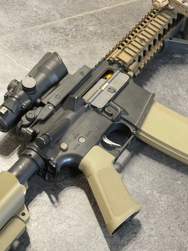 Prodám tuhle nesmrtelnou zbraň s top upgrade. Na upgrade byly použity ty nejlepší dostupné díly v té době. Zbraň v klidu zvládne i 190 m/s, stačilo by vyměnit pružinu, ale nikdy jsem jí tam neměl. Zbraň jsem stavěl pro maximální přesnost a dobrou kadenci pro ty největší akce Airsoft Wars kde je limit do 150 m/s. Přišli děti, odešel airsoft, už jsem si 2 roky nevystřelil. Zbraň jsem nechával skládat, nikdy jsem tomu do té úrovně nerozuměl, většina dílů se kupovala na Anareusu, mohu dohledat k tomu objednávky historické. Byl tam CNC mechabox V2 QSC RETRO ARMS, precizní hlaveň, lepší spoušť, CNC hop up komora ME PRO, CNC Infinity motor, píst a válec SHS, duralová hlava pístu, CNC nízkprofilová kluzná ložiska, CNC ozubený kola, procesorová jednotka TITAN V2 GATE, a tak dál, a tak dál.. Ke zbrani dám hromadu zásobníků k platformě AR15 / M4 / MK18. Pořizovací cena - masakr.. jsem si vědom že bych to za to nikdy nemohl prodat. ACOG není v ceně. Pokud chcete víc fotek, mohu nafotit detailně jak si řeknete.