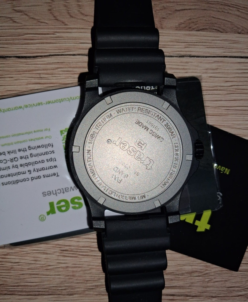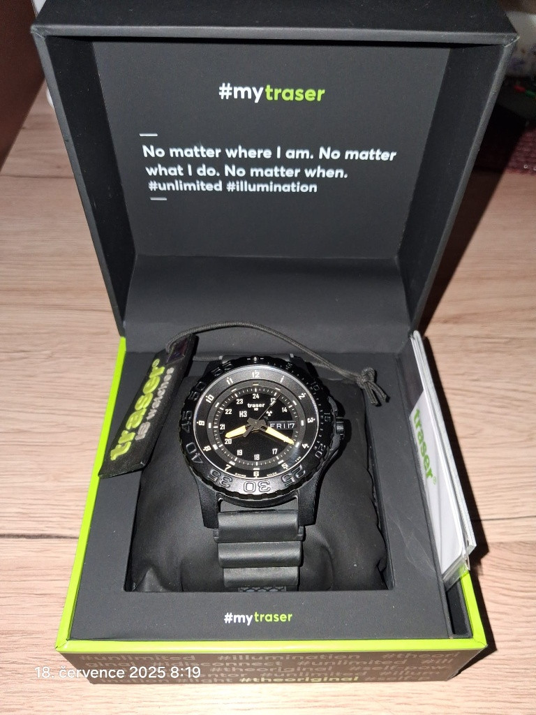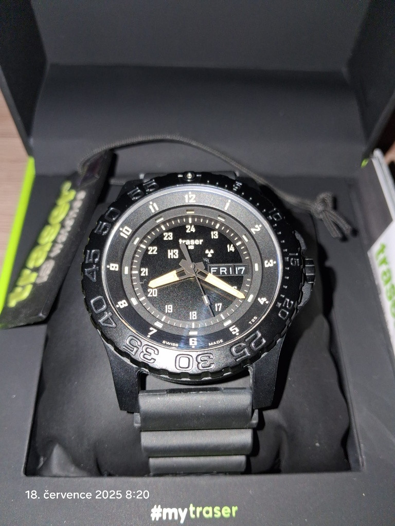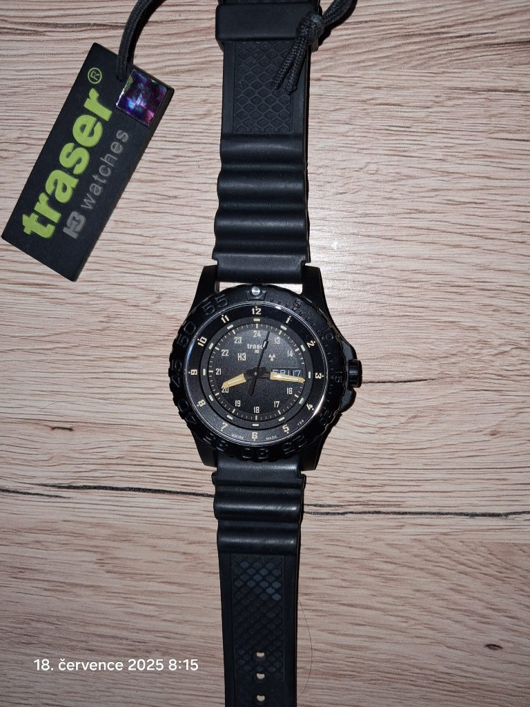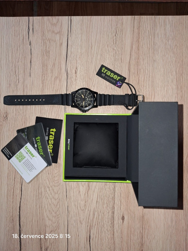 Prodám hodinky Traser P 6600 , pryžový řemínek. Hodinky necelé dva roky staré, ve stavu nové. Prodloužená záruka o tři roky, teda v záruce. Minimálně nošeny,TOP stav. Kupovány u atorizovaného prodejce Helveti. Tato značka opět zdražila.. V případně zájmu neváhejte poslat dotaz. Jednoduchý a přehledný číselník doplňuje datumovka s ukazatelem dne. Ručičky a indexy v noci osvětluje technologie trigalight v zelené barvě s oranžovým bodem na dvanácté hodině. Vodotěsnost se udává do 200 metrů, proto s nimi můžete do sprchy, bazénu i pod vodní hladinu skoro bez omezení. Švýcarske hodinky se budou dále zdražovat díky zvýšení cel od USA, které postihlo pravě tuto zemi nejvíc v Evropě. www.helveti.cz/traser-p-6600-sand-nato