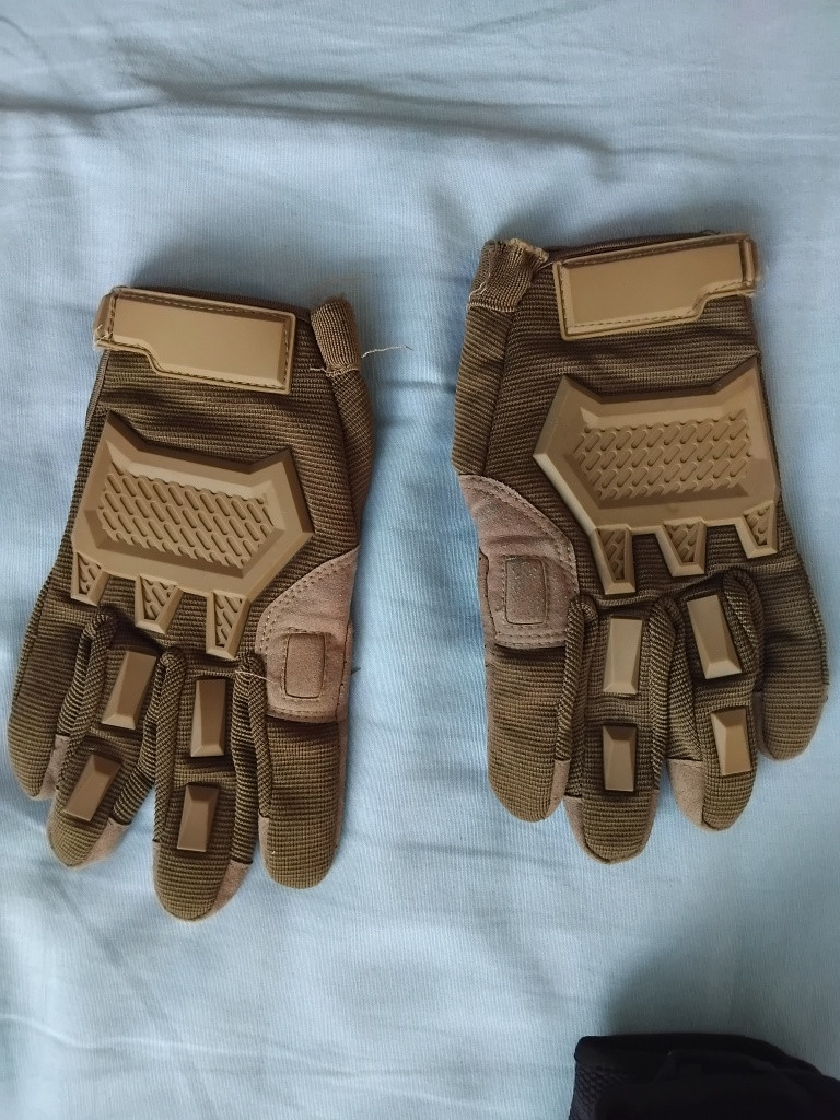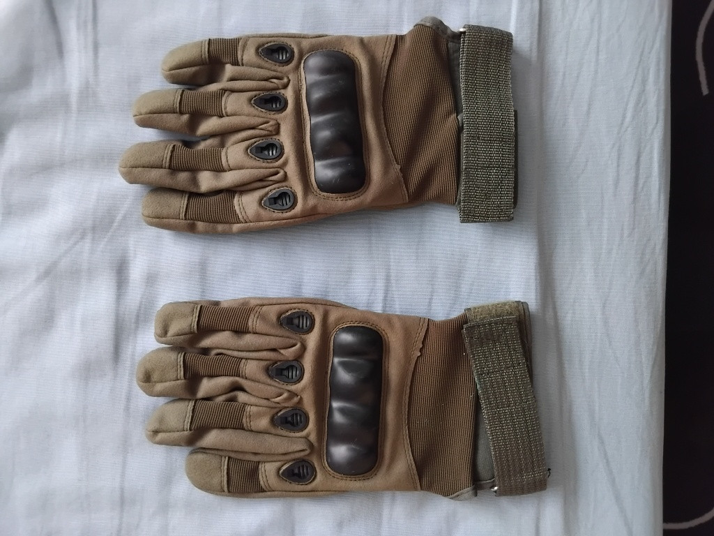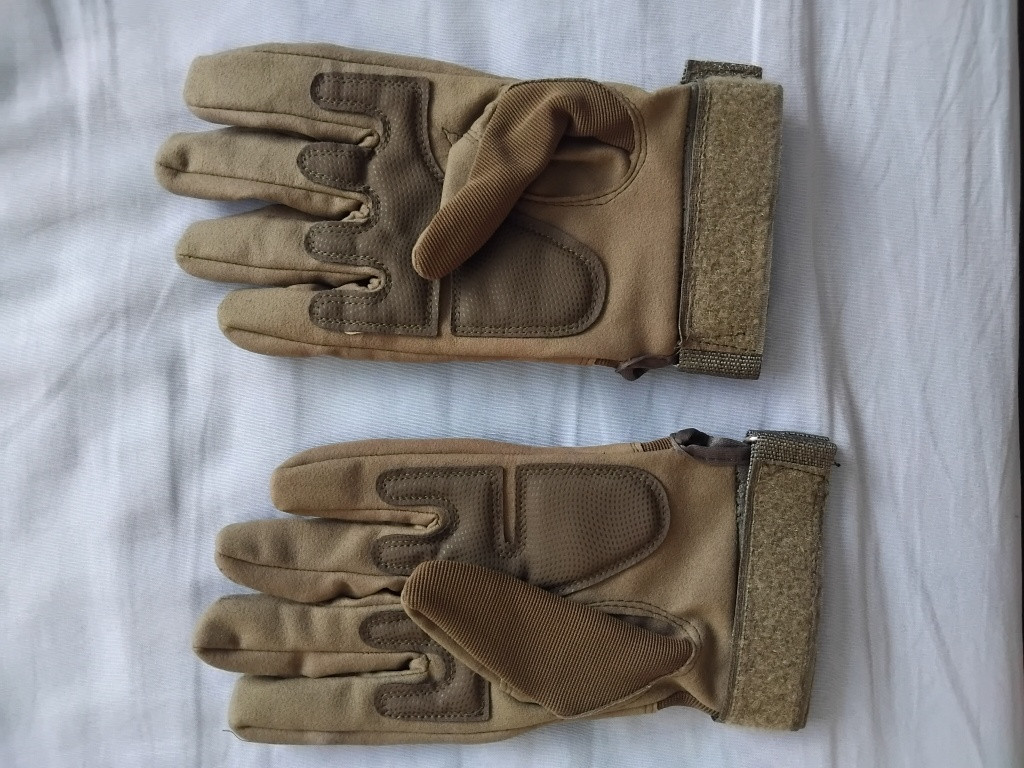 Černé machanix M použité - 100,-, TAN no name M použité- 100,-, zelené s výztuhou kloubů no name L, nové ale dole, u sucháče, se pářou - 100,-