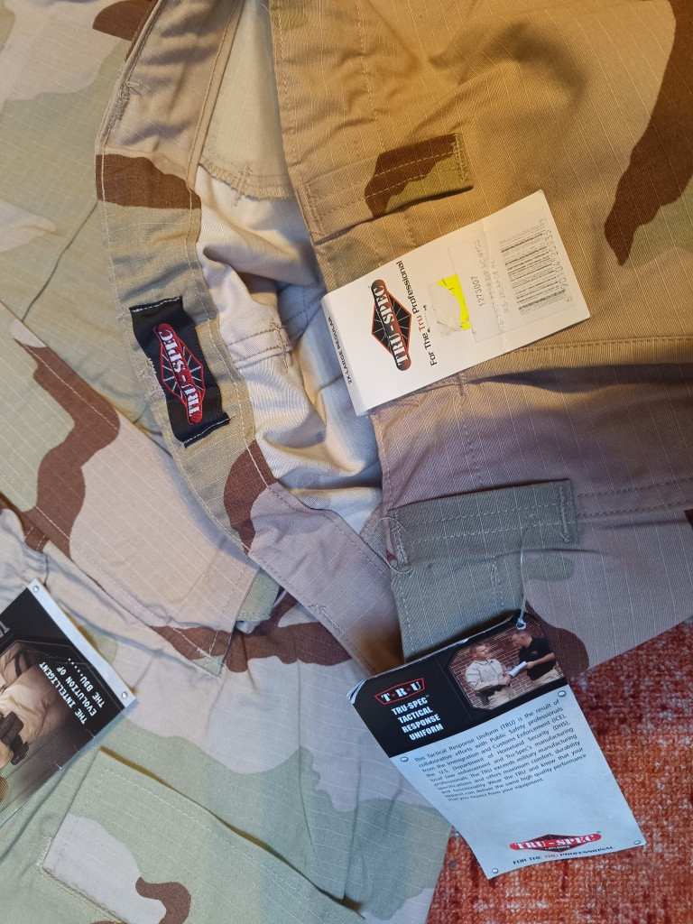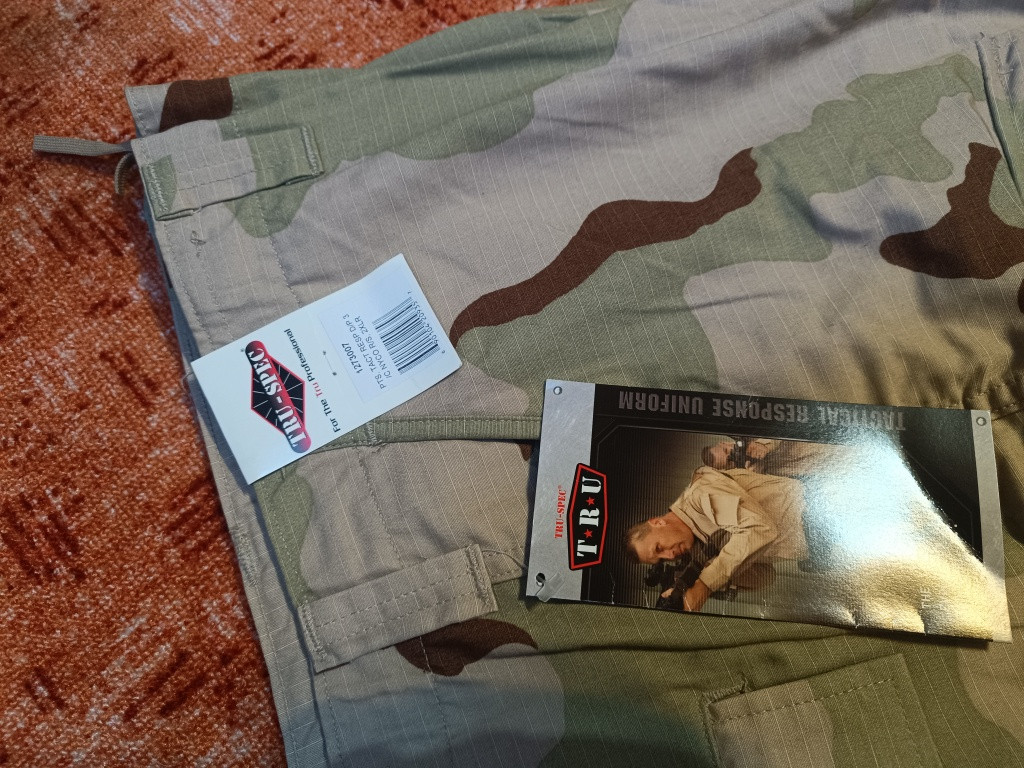 Prodám nové nepoužité kalhoty od firmy Tru Spec. Vzor 3 Desert, střih TRU, materiál 50 50 NY Co ripstop, velikost XXL Regular. Cena 1550 je za 1 kus. Předání osobní Chrudim nebo zasilkovna po dohodě. Dnes již nesehnatelny vzor v odolné a trvanlivé směsi materiálu ????