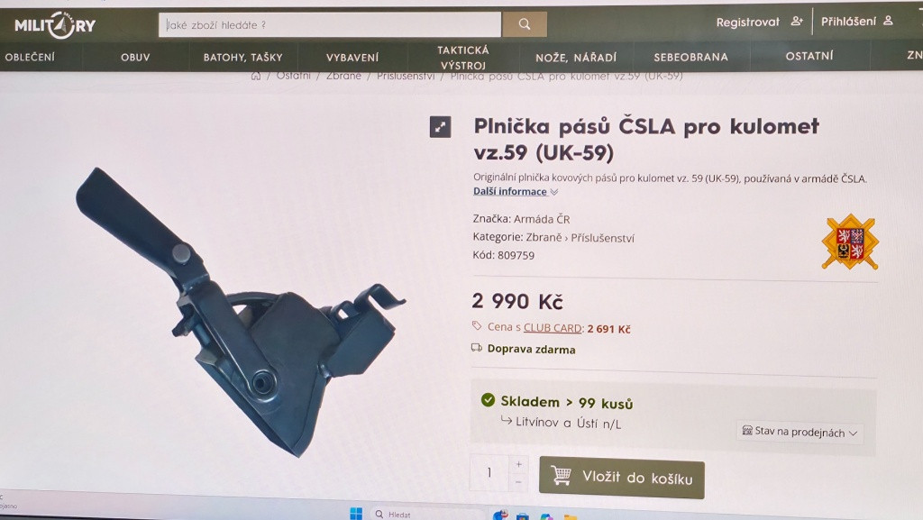 Prodám origo dvojnožku pro kulomet UK59.Dvojnožka je teleskopická s možností nastavení.Jedná se o nepoužité kusy - NZ zásoba ČSLA / AČR.Cena 1000kč za kus.Dále mám plničky pásů pro UK59 za 1600kč/kus.Možno poslat Zásilkovnou na dobírku.