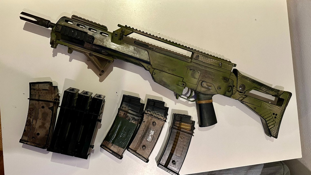 Prodám Umarex G36K. Zbraň je používaná, ale v zachovalém funkčním stavu, přidám k ní spoustu zásobníků (tlačáky i točáky) + spoustu náhradních dílů jako předpažbí, pažby, lišty...(nejsou na fotce). Preferuji osobní předání v Praze.