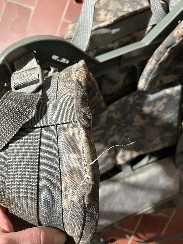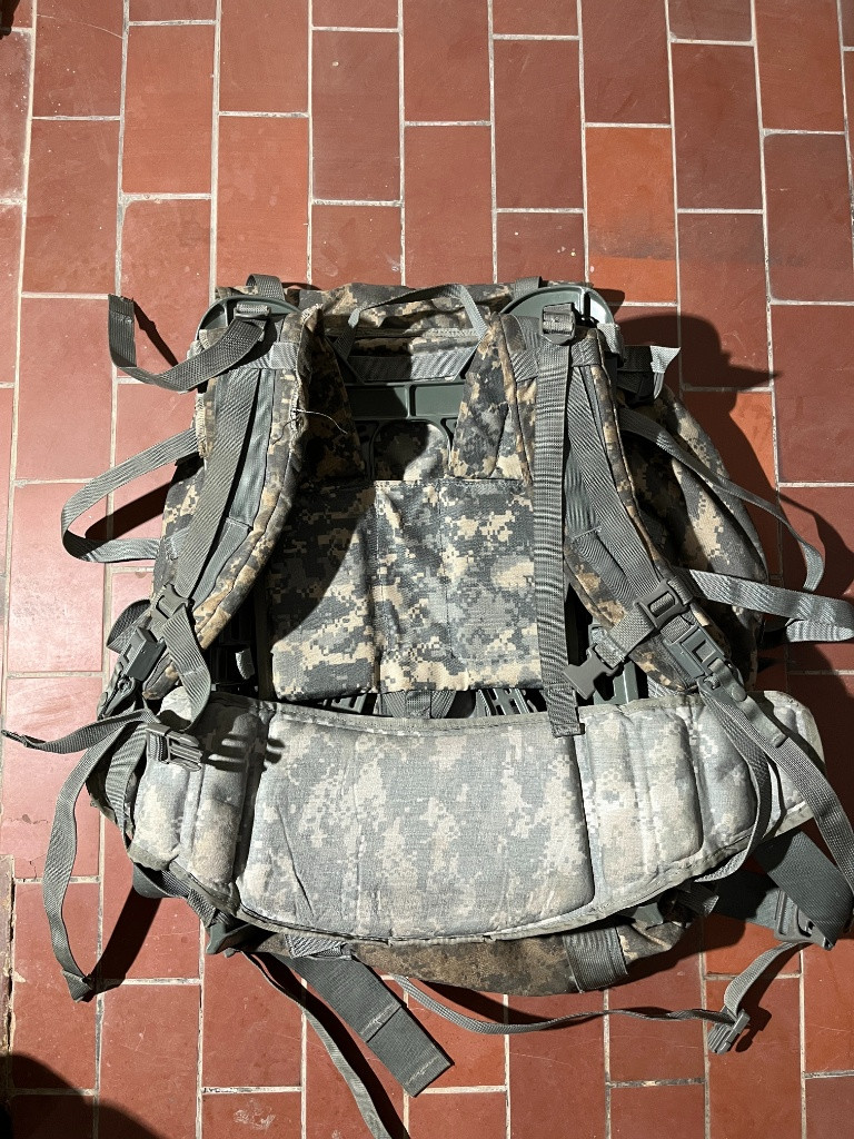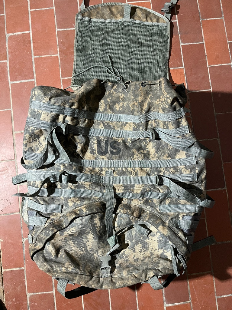 US Army MOLLE II batoh v potiksu UCP. Batoh má roztřepený popruh, jinak je vše v pořádku. Mrkněte na moje další nabídky, při odběru víc věcí sleva jistá. Posílám pouze přes Zásilkovnu!