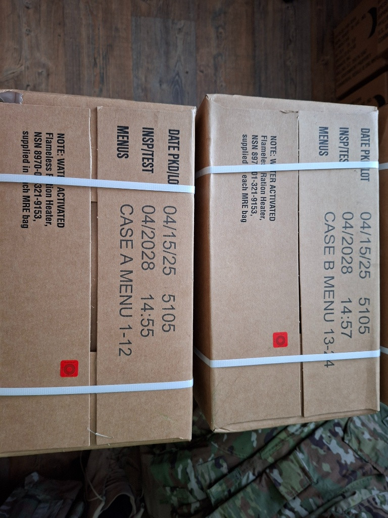 US army MRE, bojová dávka potravin, insp.2028,bedny A I B,cena za bednu 2000kč, posílám balikovnou a zásilkovnou