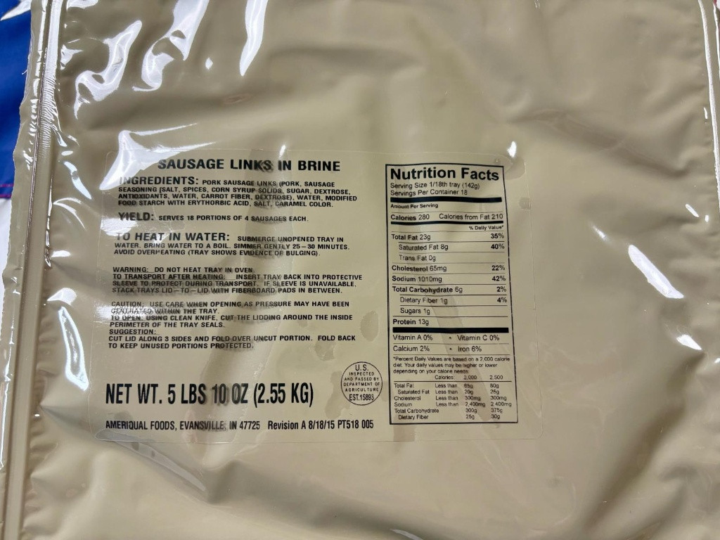 | US ARMY MRE 18 Porcí - Potravinová dávka - Turkey Sausages Patties |