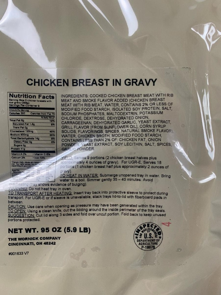 | US ARMY MRE 18 porcí - Potravinová dávka - Chicken Breast in Gravy |