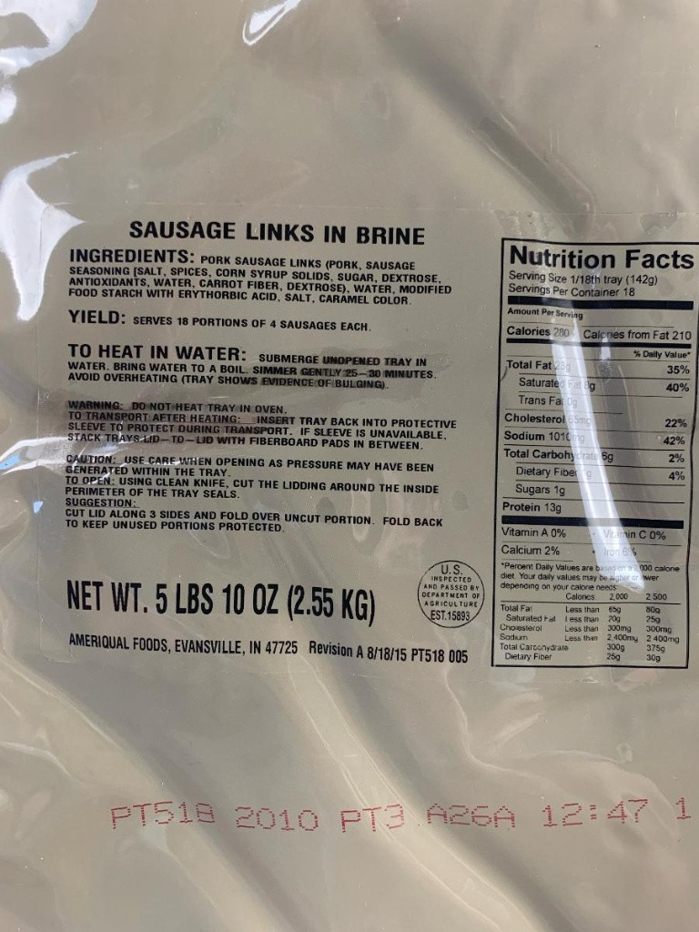 | US ARMY MRE 18 porcí - Potravinová dávka - Pork Sausage Links in Brine |