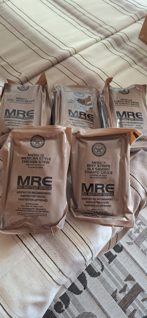 US army MRE, bojová dávka potravin, insp.27 a 28,cena za kus 170kč, posílám balíkovnou a zásilkovnou...k dispozici i celé bedny s insp.2028