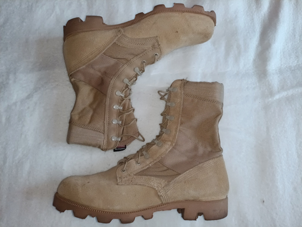 Na prodej. US pouštní boty, letní. Použité v dobrém stavu. Velikost 11,5W, a altama 12W. Cena 500 kč. Osobní odběr v Praze, nebo pošta 50kč. Platí do smazání.