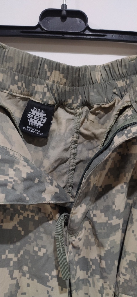 US softshellové kalhoty ECWCS Gen.III Level 5 v potisku UCP. Štítek s velikostí ustřižený, snad Medium-Regular. Skutečné rozměry: šířka v pase max. 50 cm, délka nohavice od rozkroku 74 cm, délka celková 103 cm. Zánovní stav - kalhoty jsou bez poškození a snad nikdy ani nebyly venku - táhla i jezdce zipů jsou čisté, neošoupané, suché zipy bez bordelu, žádné skrvny. Posílám přes Zásilkovnu, na dobírku jen po uhrazení zálohy na dopravu předem. Cena k jednání.