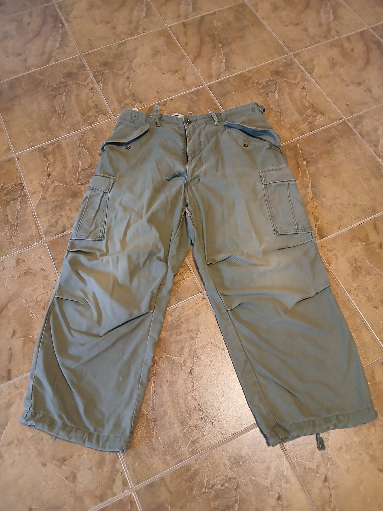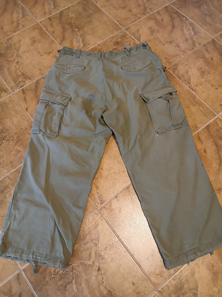 Nošené originál US kalhoty M65 (1974-medium-regular). Potřeba opravit přední kapsy uvnitř a stahování pasu. Nohavice ok, včetně zipu. Jinak zachovalé, neděravé, pro tramping atd... rozměry viz foto. Více info po tel... cena 1200,-