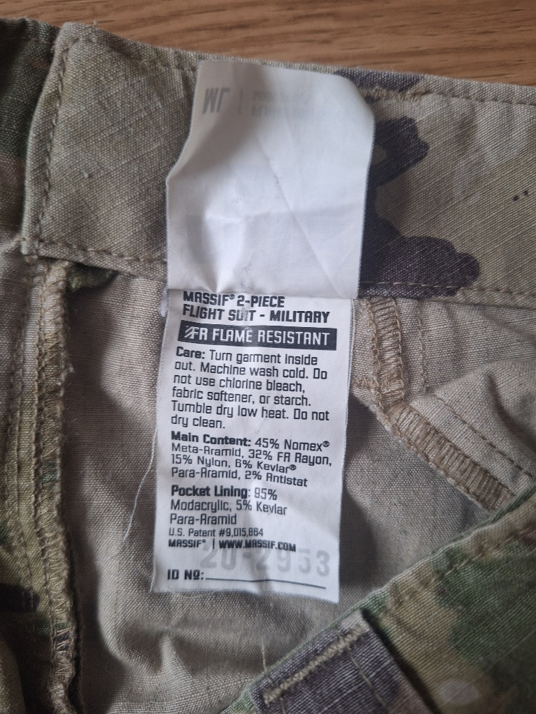MASSIF - US pilotní kalhoty, multicam, FR, ML, použité Prodám originál US MASSIF Flight Suit kalhoty, Flame Resistant - Nehořlavý materiál Nomex. MC / OCP . 7 kapes: vepředu, na stehnech a na lýtkách. . Různé vychytávky: podšívka kapes ze prodyšné síťoviny s kevlarem, kapsy na stehnech mají 2 zipy pro přístup shora ve stoje a vepředu v sedě. . Velikost MEDIUM – LONG . Šířka pas: max 39-45 cm (napnuté) . Celková délka po vnějším okraji nohavice: 112 cm . Délka nohavice od rozkroku: 82 cm . Použité, hodně vybledlé, žádné díry, všechny zipy OK. . . Osobní předání v Praze 6. . Zaslat možno poštou (+100 Kč) nebo na Zásilkovnou (+89 Kč), poštovné hradí kupující. . Inzerát platí do smazání.