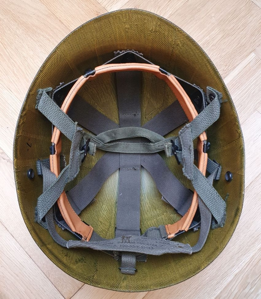Prodám vložku do U.S. helmy pro výsadkáře, s dobovými originálními díly. Liner skladovka 1983, zátylník 1985, potítko 1988, chin-cup adekvátní typ z 80.let.