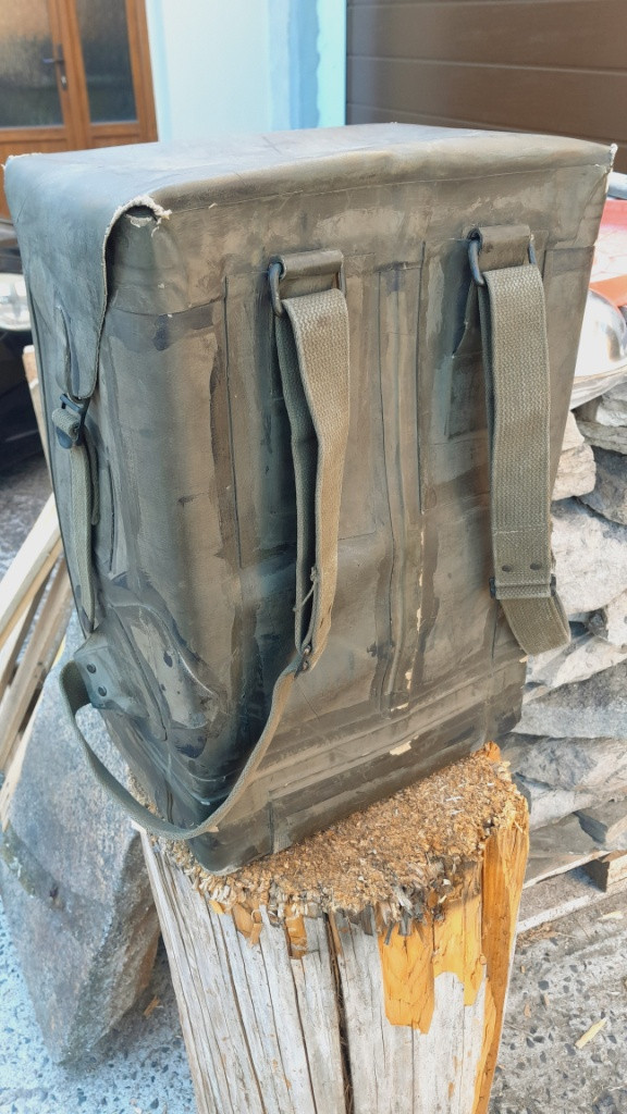 Originál US bag BG-169 v zachovalém, funkčním, nezpuchřelém stavu. Neděravé. jedná se o vodotěsný batoh na vysilačku SCR-593 i s popruhy na záda. Hezký, zachovalý stav. Více info-foto na domluvě.. cena 3250,-