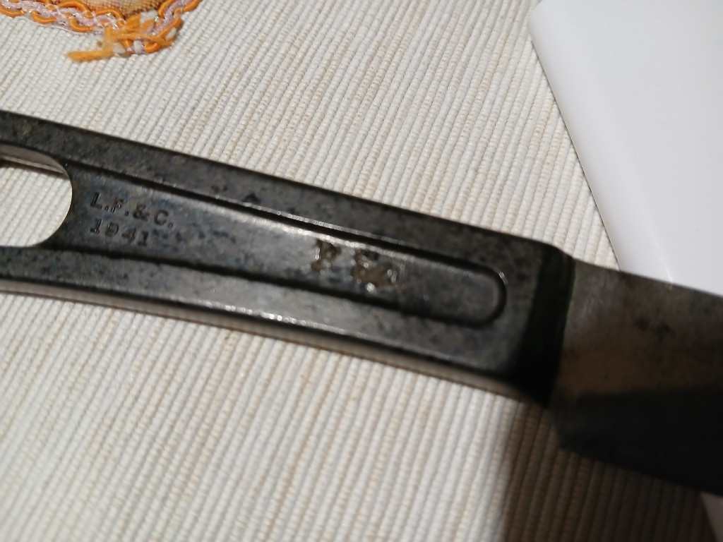 Originál us ww2 příborový nůž (bakelitová střenka) v hezkém, nezničeném a nezbroušeném stavu. Datováno 1941. cena 900,-