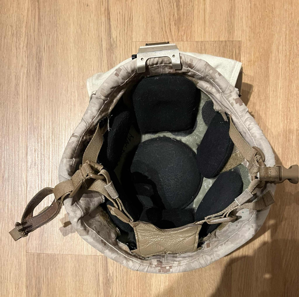 Prodám komplet ECH helmu tak, jak je na fotkách, velikost L, je ale stažená na velikost M. Materiál aramid.