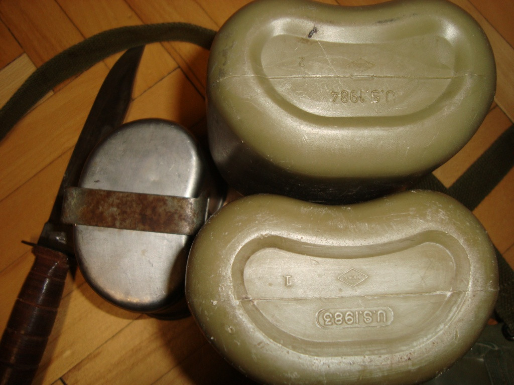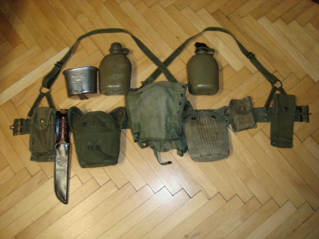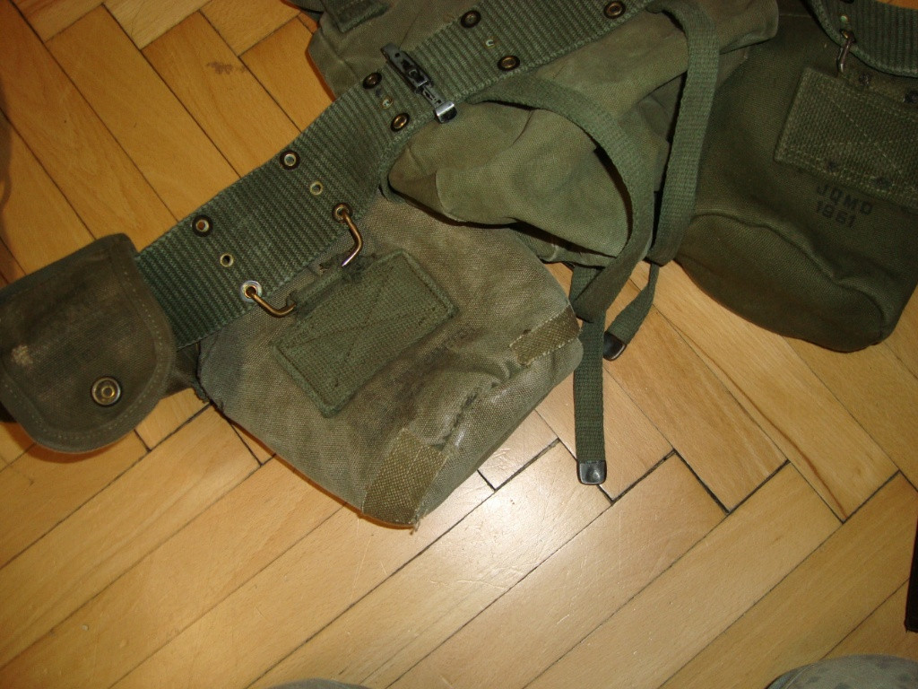Použitý stav viz foto.Náprdelák kostka v krásném stavu,Korea obal na láhev dobová oprava láhev 83,druhá obal 51 a láhev 84 a pitítko 53.Opasek M. Sumky pro M 14 jedna dropná oprava druhá si nejsem jist zda je origo ale kupoval jsem tak a vypadá dobře. Kabar neznačen.Cena kompletu 8400,- dohoda možná osobní předání Praha jinak pošta,balíkovna nebo zásilkovna.
