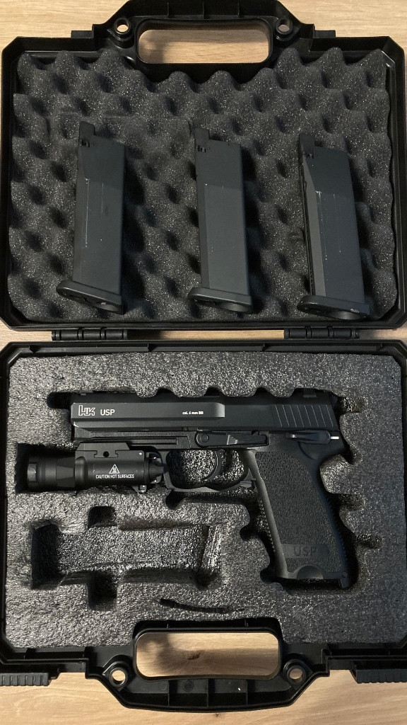 Zdravím, prodám prakticky nové USP. Uděláno pár drillů a na zkoušku z každého zásobníku vystřílená bombička. Prodám, tak jak je na fotce se vším, co vidíte. Nemam pro ni využití. Inzerát platí do smazání. Dohoda možná.