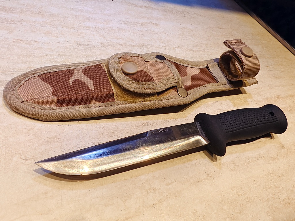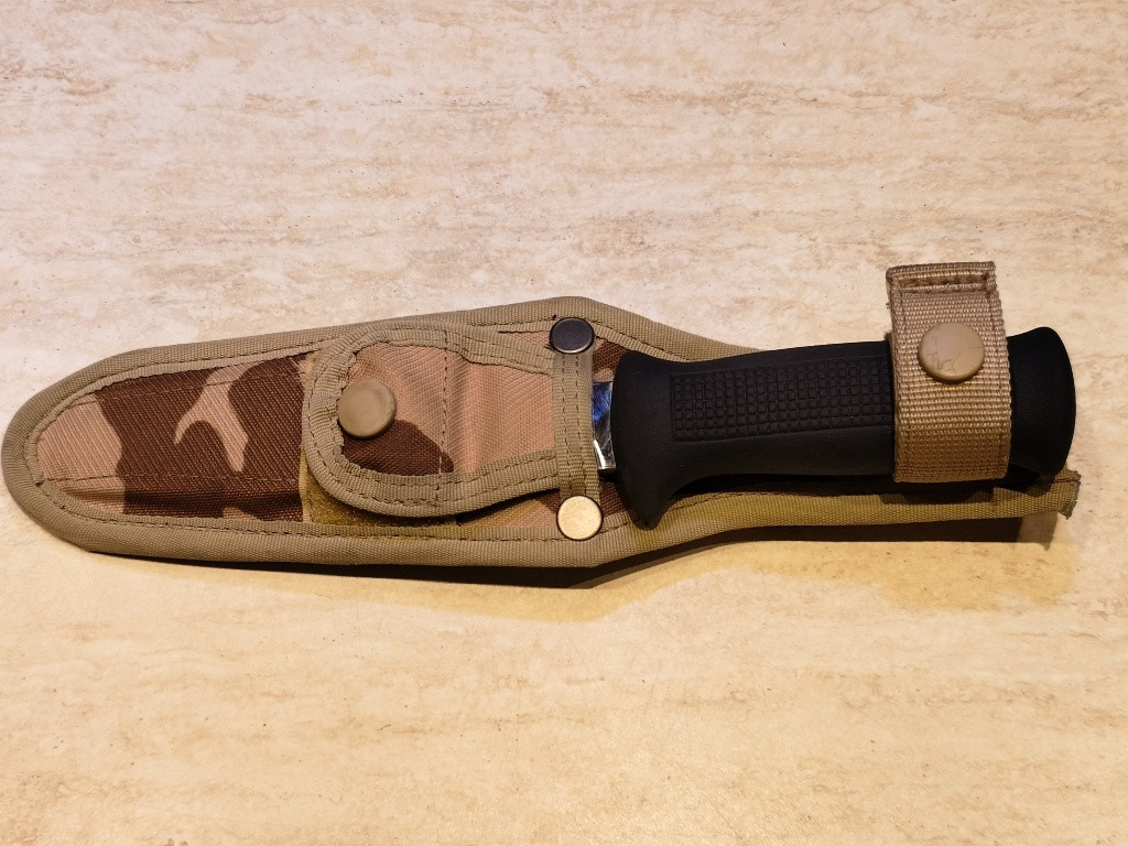 Prodám vojenský nůž Uton 0007 včetně vojenského pouzdra s maskovacím vzorem vz.95 poušť. Na čepeli v přední časti je vyštíplý kus ostří. věřím že šikovný brusič / nožíř si s tím poradí. Preferuji osobní předaní v Ml. Boleslavi, případně mohu odeslat Zásilkovnou + 79 Kč