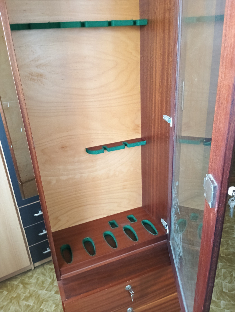 Popis:Uzamykatelná vitrína na zbraně.
