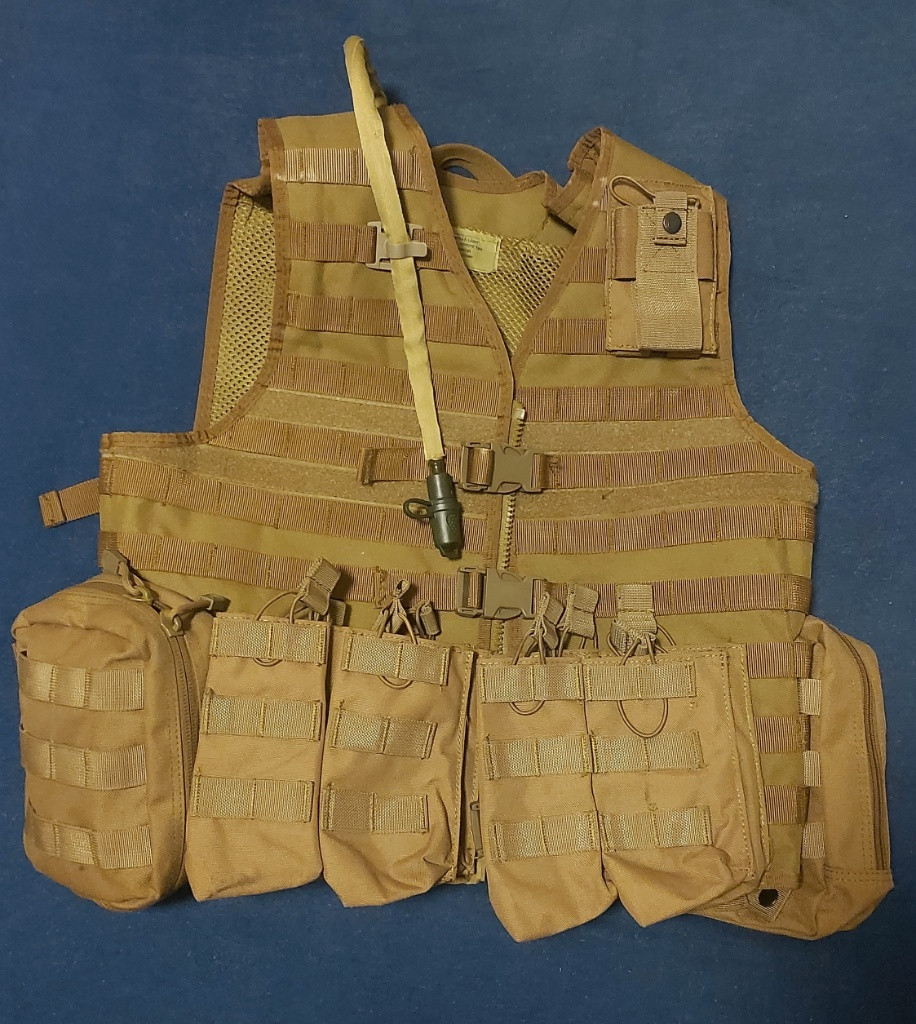 Prodám taktickou vestu včetně všeho co je na fotce krom hydratační vložky (už by se z toho asi nedalo pit). Poškozený zip, zapíná se pomocí fast tex spon. Přepravu hradí kupující.