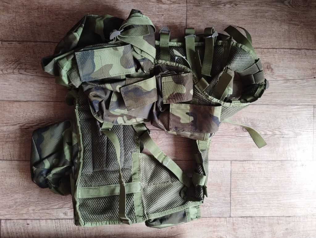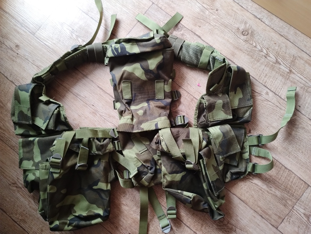 Vesta v universální nastavitelné velikosti až na fakt velký kluky. vz jako 95, stav velmi slušný. prodloužené přední popruhy cena 600,- Polní lahev US s pítkem a obalem. Stav velmi dobrý 500,- společně 1000,- osobko Teplice jinak zásilkovna