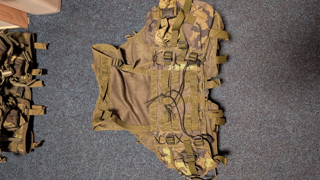 Vesta taktická TL98 vz.95 od Alp, stav dobrý, spony nepoškozené v jednom místě opravovaná nemá vliv na funkčnost, výhoda této vesty, přední trojsumky na zásobníky se dají vyměnit pod sumkami je česká molle platforma představa o ceně 1700 kč, popřípadě nabídněte