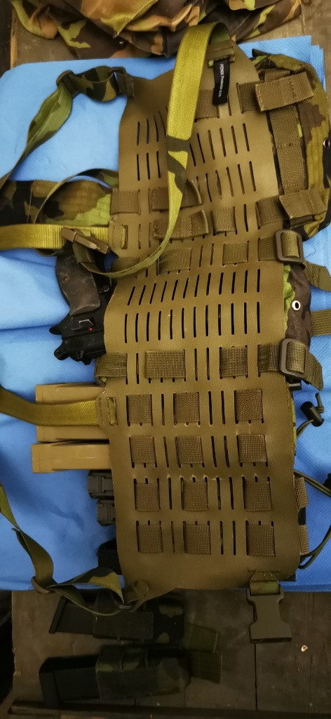 Takže vesta obsahuje 3x sumku na granáty nebo vysílačku, 1x unisumku malou (lékárna/drobnosti) 1x uni sumku velkou kuličky pojme 2 pytle kulí. A 2x sumku na zásobníky stahovatelna(pojme 1-4 zásobníky od ARP-9 po bren 47/74 m4) +molle vazba + můžu přidat k prodeji 3x sumku na pistolove zásobníky (pojme vsechny druhy a vsechny druhy drží skvěle +chlopně) za velkou uni sumku se vejde pěkně CZ75D ale doporučuji přikoupit lanko na pistol. Nikdy se mi nestalo ze by mi vypadla. plát molle 5x12 teoreticky 7x12 když si člověk umí pohrát. Ramení popruhy též vazba molle ale bez výřezů. Pasují tam panelyna jednoradou molle vazbu vertikálně i horizontálně(menší materiál Jako třebas nůž, turniket) materiál cordura 600d na gumě (myšleno guma ze které se vyrábí čluny) Původní cenna za vše cca 6500 vše origo fenix protektor představa o ceně 4 k možnost slevy plus přidám stehenní panel alp army dnešní fenix pište na whatssapp děkuji