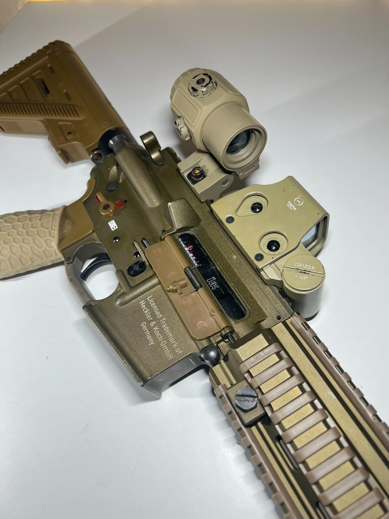 Prodám licencovanou HK416 - základ VFC GBBR Blowback > přestavba FrogEngineering do HPA systému - funkční blowback. Ve Zbrani 370mm MapleLeaf 6,02 GBBR hlaveň a 80° ML gumička Ke zbrani: 15x zásobník (42/30 ran dle nastavení) - 6 zásobníků komplet > 9 natištěno k dokončení + náhr díly Zásobníky jsou kompletní 3D tisk - https://www.printables.com/model/216413-f-mag-556-for- frog-engineering-gbbr-airsoft-rifles Red Dot - Theta Optics XTO Baterka - WADSN R600DF Tlumič - ACETECH Blaster Nebráním se výměně za HPA DMR se zastavěnou F2 platforma AR (SR25, HK417)