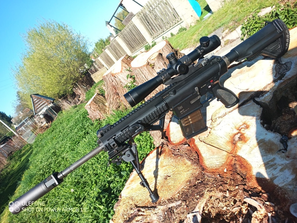Retro CNC V2.2 mech, Guarder Bore up vzduchárna, ASG Infinity 22k motor, Begadi neptum hop up + 3D tištěný adaptér, QD tlumič Rotex, kopie Leupold optiky, Haris bipod, 3ks vfc origo zásobníků tlačáků. Stavěno Fidelem. Prakticky nehraná, pouze jako výstavka Měl bych zájem o nějaké GBBR VFC Gen3/MWS, popřípadě VFC HK416 AEG v plný palbě