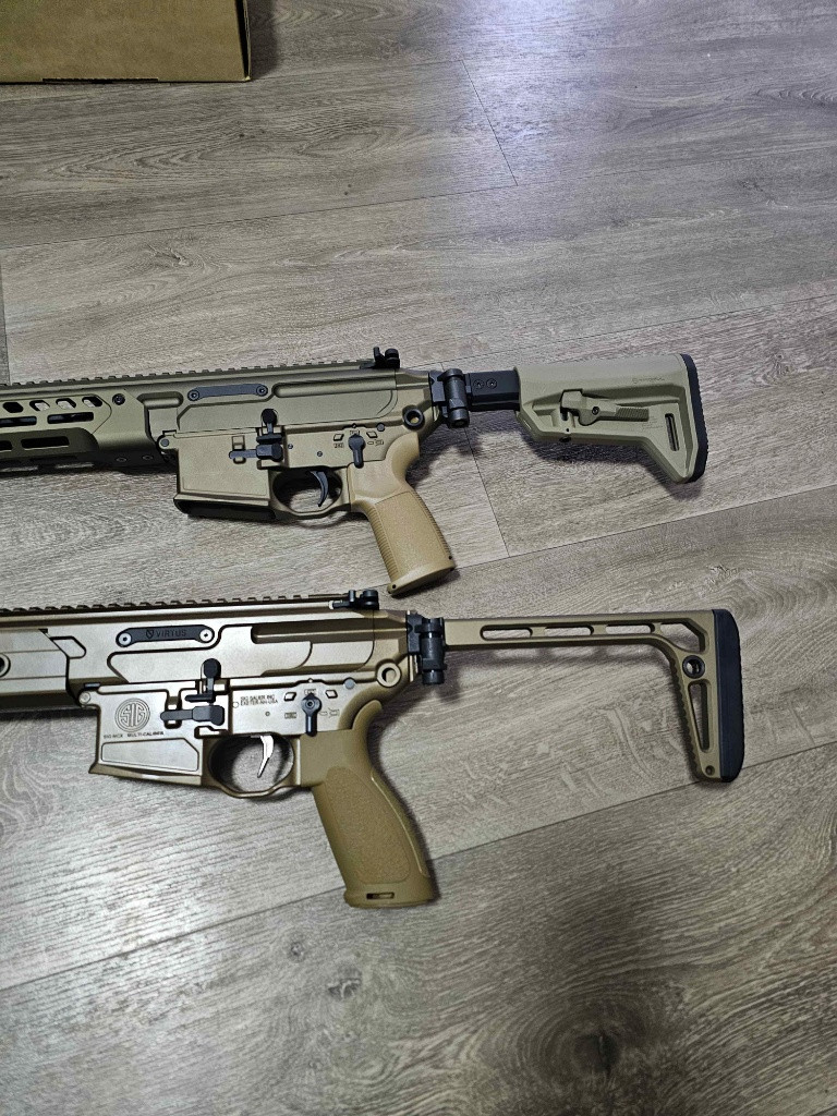 Prodám postavené AEG na míru s Cerakote Burnt bronze povrchem. Vnitřek: RA CNC gearbox, RA vzduchotechnika, SHS CNC kola, Perun V2 s Perun PRO clicker, Nejlepší a nastavitelný brushless motor od SA, Maxx zlatá komora, Prometheus hlaveň, Vše nalazeno a seřízeno perfektně pro 0.32g na 1.7J. Nejedná se o žádnou amatérskou slátaninu od Pepy z pokojíčku, ale naprosto perfektní stroj. Stavěno pro co nejlepší RS pocit. Originální díly (pažba a vnitřek) v ceně. K tomu přidám 5x PTS 250bb zásobník, zkrácenou vnější hlaveň pro int. tlumič a fde tlumič na fotce. Možnost vyměnit za tube stock s Magpul fde pažbou z mého GBBR MCC, viz. foto. APFG Spear také k prodeji, více info PM. Záruka na stavbu 1 rok.