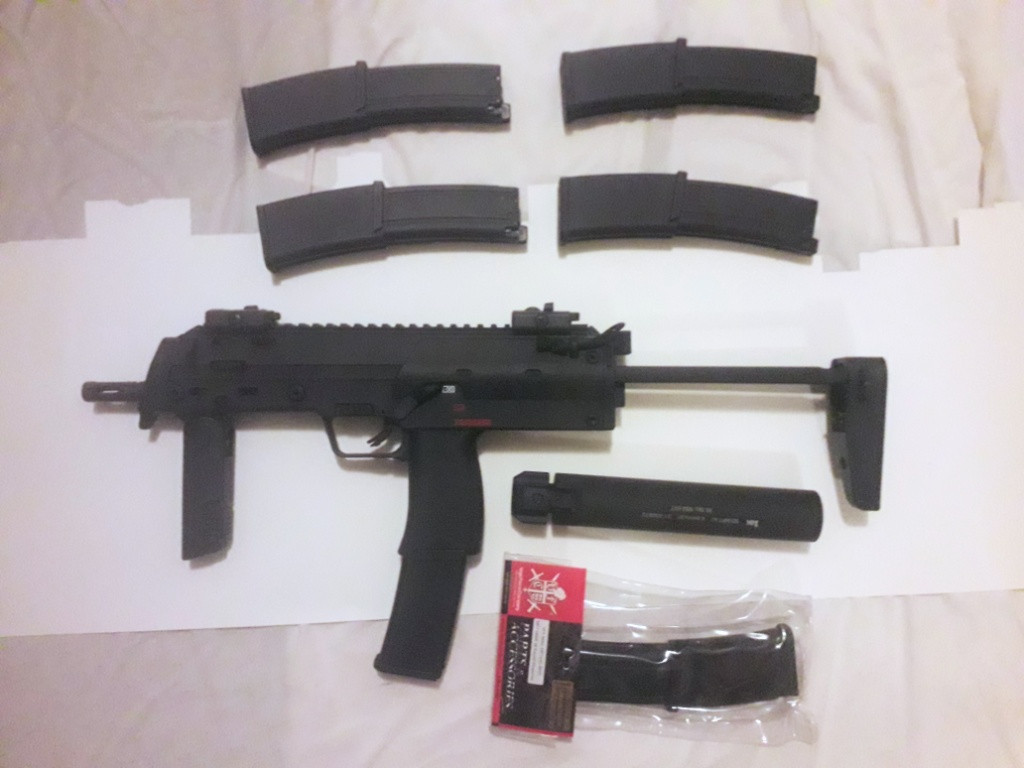Prodám svoji skoro nehranou VFC MP7 GBBR. Mám k ní originální tlumič s ražením HK 6 zásobníků (všechny těsní) a Crusader ocelový záchyt pažby. Za 900 přidám ještě kompletní bolt