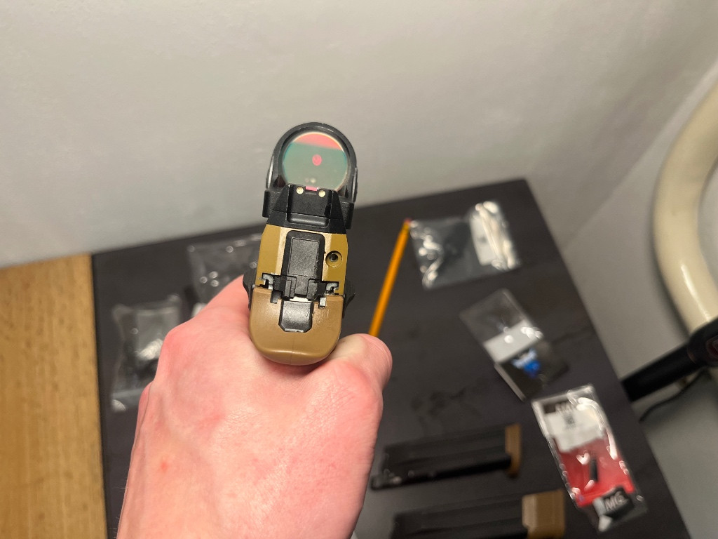 Prodám Sig p320 od VFC s montáži na kolimator a zvýšenými mířidly a replikou kolimator SRO od firmy aim-O . Ke zbrani je jeden prodloužený a jeden klasicky zásobník. (Jeden netěsní) ve zbrani je upgrade od AMG zimní sada pružin ( kladívko, vratná, a zároveň i sada silnějších pružin. Amg klapka trysky a amg ventilky do zásobníku ( je tam ještě jeden navíc)