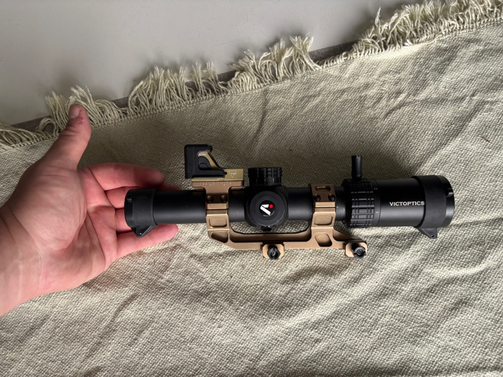 Optika 1-6x s pákou na rychlotočení, se supr sklem, dá se rozsvítit a koukat do ní oběma očima jako do kolimátoru + montáž + RMRko + k oběma killflashe
